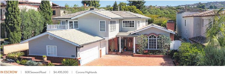 IN ESCROW | 608 SeawardRoad | $4,495,000 | Corona Highlands
