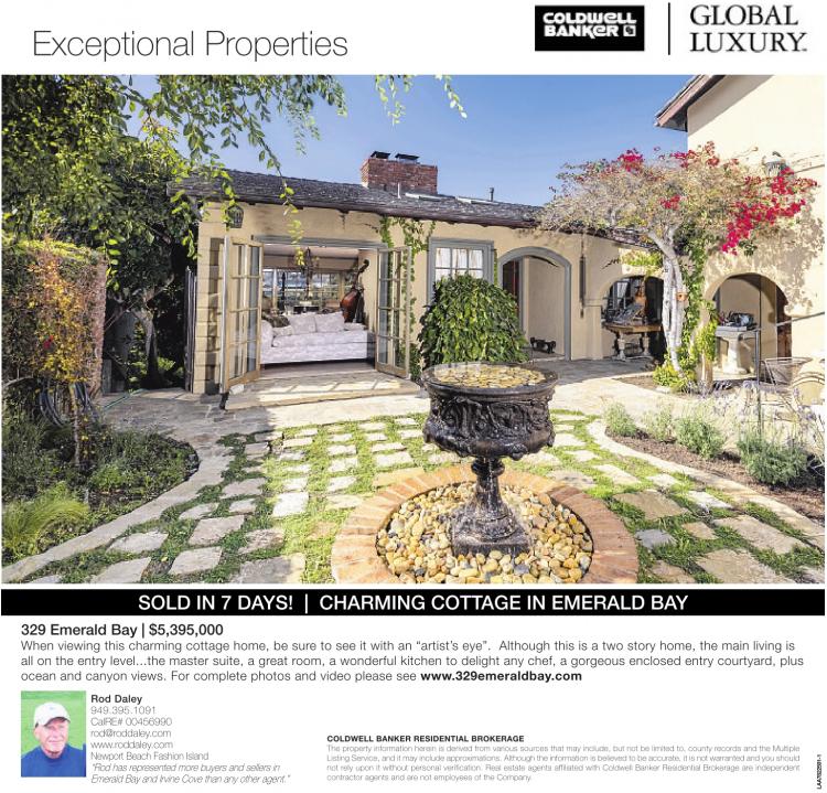 Rod Daley 949.395.1091 CalRE# 00456990 rod@roddaley.com www.roddaley.com Newport Beach Fashion Island “Rod has represented more buyers and sellers in Emerald Bay and Irvine Cove than any other agent.”