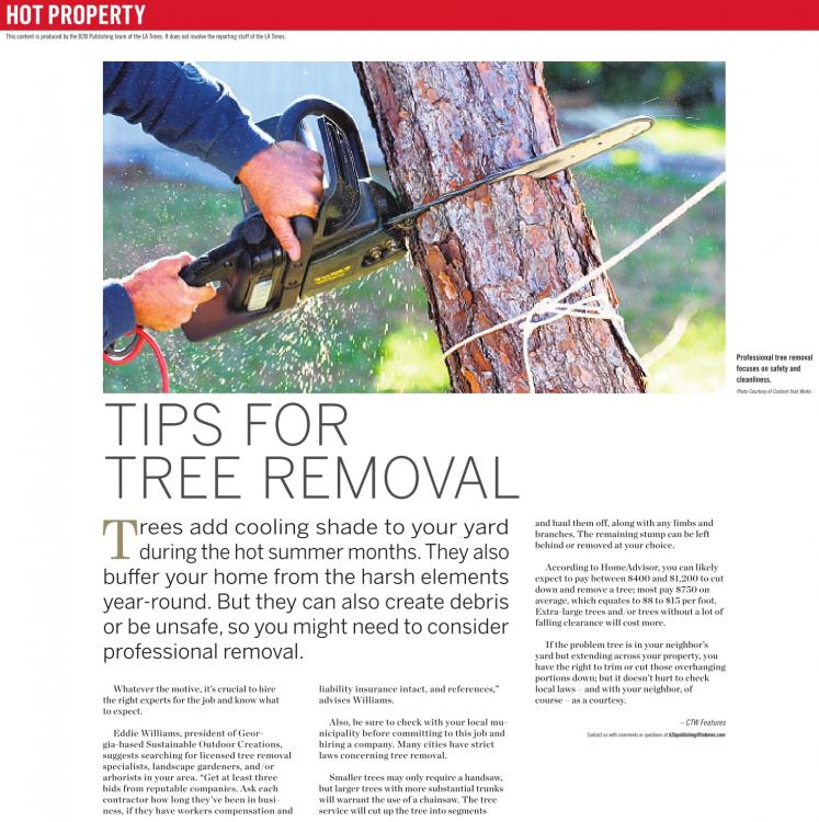 Eddie Williams, president of Georgia-based Sustainable Outdoor Creations, suggests searching for licensed tree removal specialists, landscape gardeners, and/or arborists in your area. “Get at least three bids from reputable companies. Ask each contractor how long they’ve been in business, if they have workers compensation and