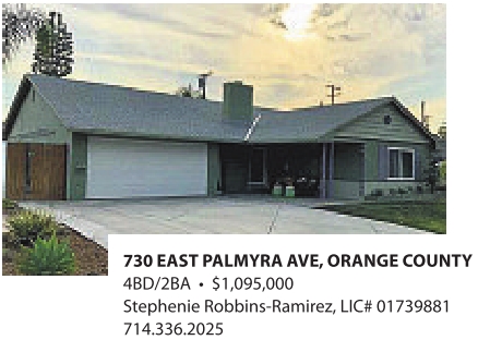 730 EAST PALMYRA AVE, ORANGE COUNTY 4BD/2BA • $1,095,000 Stephenie Robbins-Ramirez, LIC# 01739881 714.336.2025