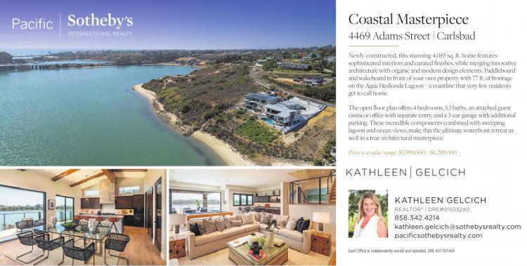 REALTOR ® | DRE#01503240 858.342.4214 kathleen.gelcich@sothebysrealty.com pacificsothebysrealty.com
