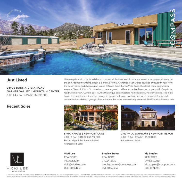 Vicki Lee REALTOR ® 949.466.3224 vicki@vickilee.com DRE 00664250