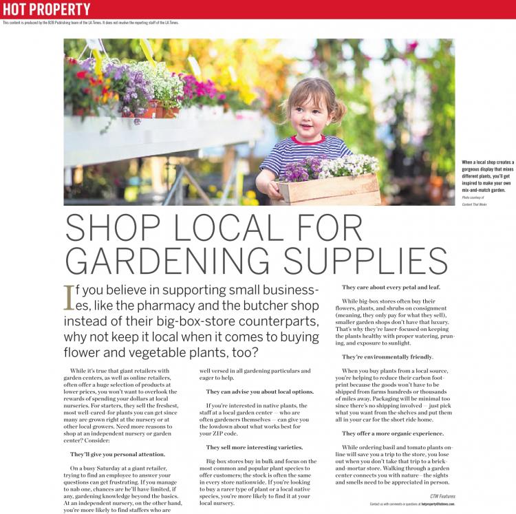 you believe in supporting small businesses, like the pharmacy and the butcher shop instead of their big-box-store counterparts, why not keep it local when it comes to buying flower and vegetable plants, too?