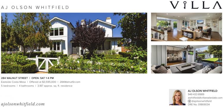 AJ OLSON WHITFIELD 949 433 8989 awhitfield@villarealestate.com @ajolsonwhitfield DRE No. 01869034