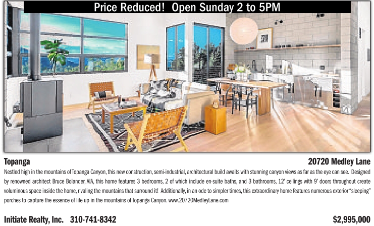 Nestled high in the mountains ofTopanga Canyon,this new construction,semi-industrial,architectural build awaits with stunning canyon views as far as the eye can see. Designed by renowned architect Bruce Bolander, AIA, this home features 3 bedrooms, 2 of which include en-suite baths, and 3 bathrooms, 12’ ceilings with 9’ doors throughout create voluminous space inside the home,rivaling the mountains that surround it! Additionally,in an ode to simpler times,this extraordinary home features numerous exterior“sleeping” porches to capture the essence of life up in the mountains of Topanga Canyon. www.20720MedleyLane.com