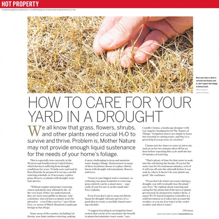 Camille Cimino, a landscape designer with Los Angeles-headquartered The Nature of Things. “Irrigation timers are simple to learn but essential to cutting waste, and they’re a great help if you go away on vacation.”