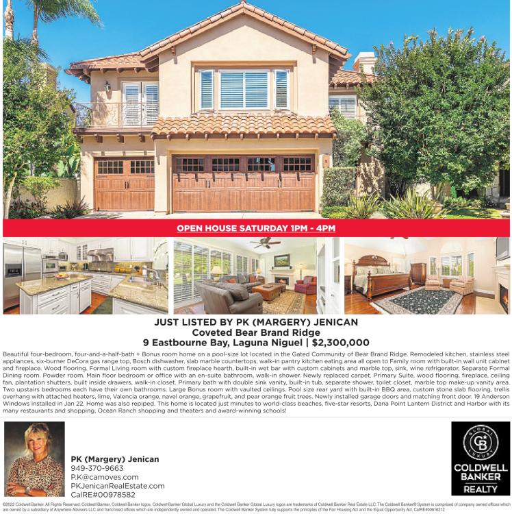 JUST LISTED BY PK (MARGERY) JENICAN Coveted Bear Brand Ridge 9 Eastbourne Bay, Laguna Niguel | $2,300,000