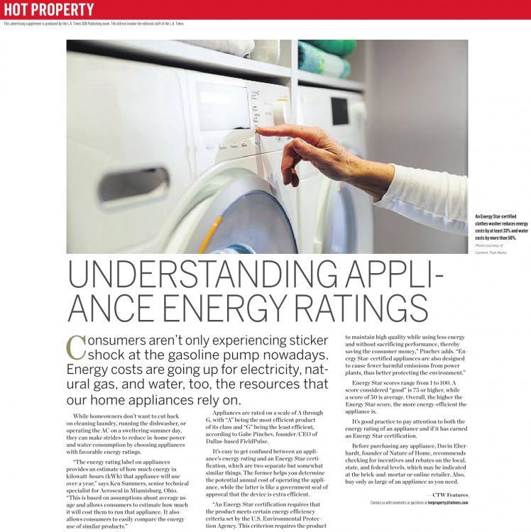 Appliances are rated on a scale of A through G, with “A” being the most efficient product of its class and “G” being the least efficient, according to Gabe Pinchev, founder/CEO of Dallas-based FieldPulse.