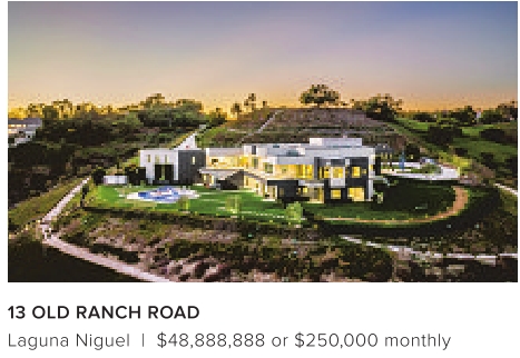Laguna Niguel | $48,888,888 or $250,000 monthly