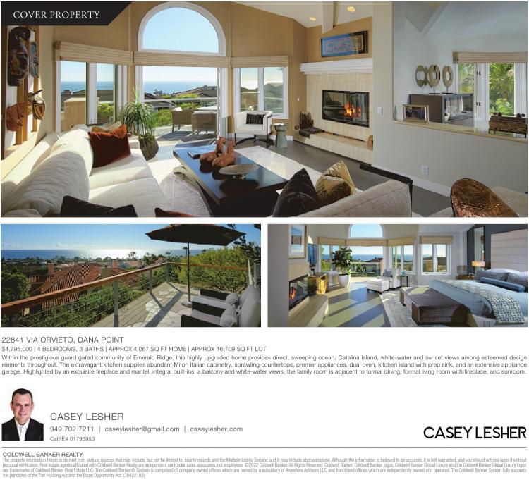 Within the prestigious guard gated community of Emerald Ridge, this highly upgraded home provides direct, sweeping ocean, Catalina Island, white-water and sunset views among esteemed design elements throughout. The extravagant kitchen supplies abundant Miton Italian cabinetry, sprawling countertops, premier appliances, dual oven, kitchen island with prep sink, and an extensive appliance garage. Highlighted by an exquisite fireplace and mantel, integral built-ins, a balcony and white-water views, the family room is adjacent to formal dining, formal living room with fireplace, and sunroom.