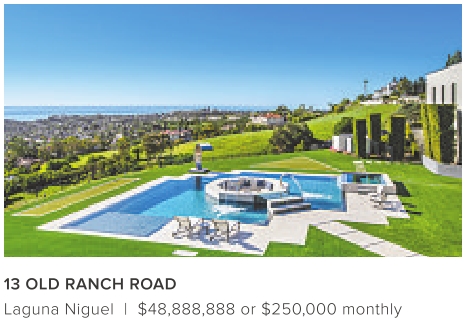 Laguna Niguel | $48,888,888 or $250,000 monthly