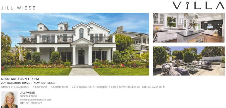 J I L L W I E S E OPEN: SAT & SUN 1 - 4 PM 2511 BAYSHORE DRIVE | NEWPORT BEACH Offered at $12,980,000 | 4 bedrooms | 4.5 bathrooms | 3,813 approx. sq. ft. residence | Large corner double lot - approx. 8,281 sq. ft. JILL WIESE 949 244 9036 jwiese@villarealestate.com DRE No. 01078872