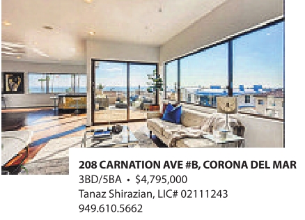 208 CARNATION AVE #B, CORONA DEL MAR 3BD/5BA • $4,795,000 Tanaz Shirazian, LIC# 02111243 949.610.5662