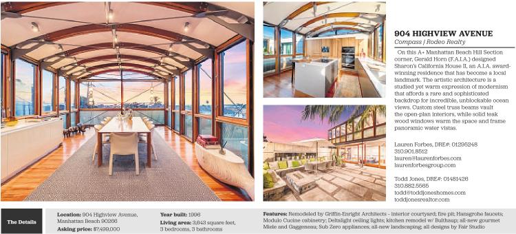 On this A+ Manhattan Beach Hill Section corner, Gerald Horn (F.A.I.A.) designed Sharon’s California House II, an A.I.A. awardwinning residence that has become a local landmark. The artistic architecture is a studied yet warm expression of modernism that affords a rare and sophisticated backdrop for incredible, unblockable ocean views. Custom steel truss beams vault the open-plan interiors, while solid teak wood windows warm the space and frame panoramic water vistas.