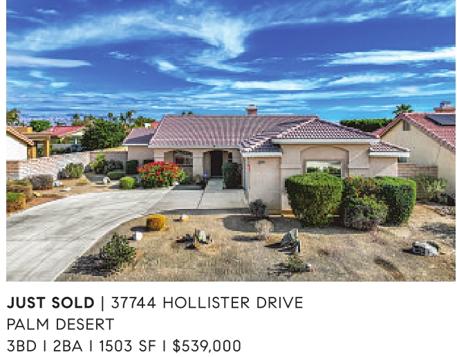 | 37744 HOLLISTER DRIVE PALM DESERT 3BD I 2BA I 1503 SF I $539,000