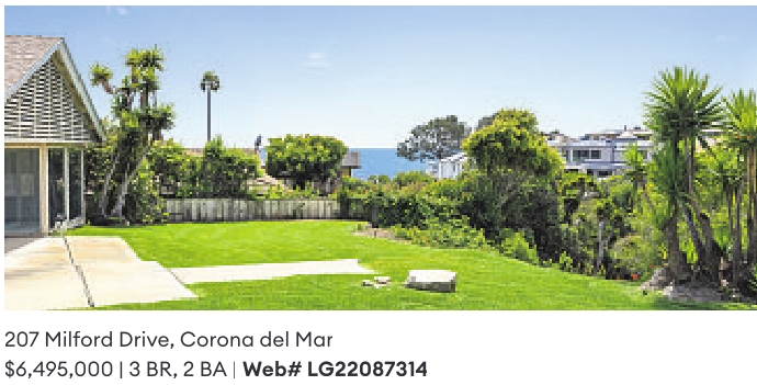 207 Milford Drive, Corona del Mar $6,495,000 | 3 BR, 2 BA |