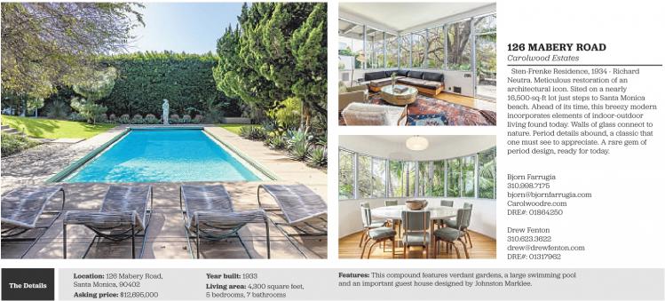 Sten-Frenke Residence, 1934 - Richard Neutra. Meticulous restoration of an architectural icon. Sited on a nearly 16,500-sq-ft lot just steps to Santa Monica beach. Ahead of its time, this breezy modern incorporates elements of indoor-outdoor living found today. Walls of glass connect to nature. Period details abound, a classic that one must see to appreciate. A rare gem of period design, ready for today.