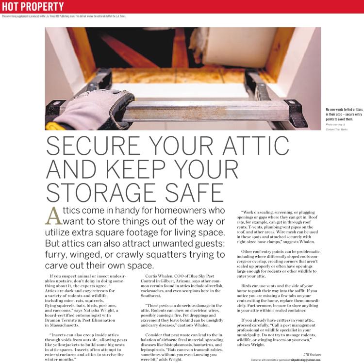 Curtis Whalen, COO of Blue Sky Pest Control in Gilbert, Arizona, says other common vermin found in attics include silverfish, cockroaches, and even scorpions here in the Southwest.