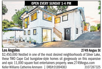 2749Angus St $2,450,000 Nestled in one of the most desired neighborhoods of Silver Lake, these TWO Cape Cod bungalow-style homes sit gorgeously on this expansive and epic 11,000 square foot entertainers property. www.2749Angus.com
