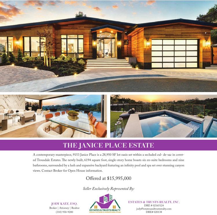 A contemporary masterpiece, 9153 Janice Place is a 28,950 SF lot oasis set within a secluded cul- de-sac in coveted Trousdale Estates. The newly built, 6194 square foot, single-story home boasts six en-suite bedrooms and nine