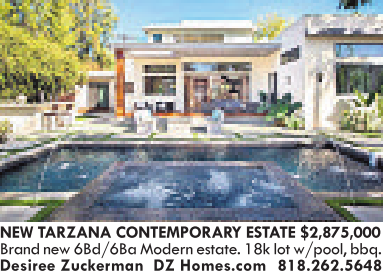 NEW TARZANA CONTEMPORARYESTATE$2,875,000 Desiree Zuckerman DZ Homes.com 818.262.5648