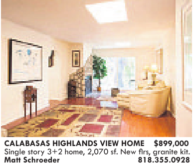 CALABASAS HIGHLANDS VIEW HOME $899,000 Matt Schroeder 818.355.0928
