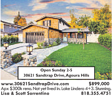 www.30621SandtrapDrive.com $899,000 Apx $300k reno.Not yetlived in. LakeLindero4+3. Stunning. Lisa &Scott Sorrentino 818.355.4751
