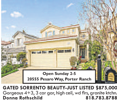 GATED SORRENTO BEAUTY-JUST LISTED $875,000 Donna Rothschild 818.783.8788