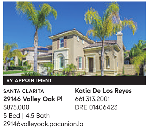 BY APPOINTMENT SANTA CLARITA Katia De Los Reyes 29146 Valley Oak Pl 661.313.2001 $875,000 DRE 01406423 5 Bed | 4.5 Bath 29146valleyoak.pacunion.la