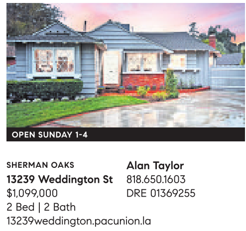 SHERMAN OAKS Alan Taylor 13239 Weddington St 818.650.1603 $1,099,000 DRE 01369255 2 Bed | 2 Bath 13239weddington.pacunion.la
