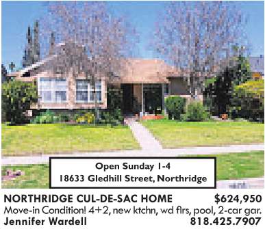 NORTHRIDGE CUL-DE-SAC HOME $624,950 Jennifer Wardell 818.425.7907