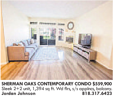 SHERMAN OAKS CONTEMPORARYCONDO $559,900 Jordan Johnson 818.317.6423