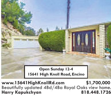 www.15641HighKnollRd.com $1,700,000 Beautifully updated 4Bd/4Ba Royal Oaks view home. Harry Kapukchyan 818.448.1726