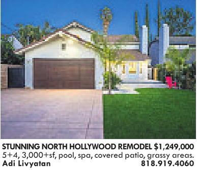 STUNNING NORTHHOLLYWOOD REMODEL $1,249,000 5+4, 3,000+sf,pool,spa, covered patio,grassyareas. Adi Livyatan 818.919.4060