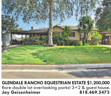 GLENDALE RANCHO EQUESTRIAN ESTATE$1,200,000 Rare double lot overlooking parks! 3+2 &guest house. Jay Geisenheimer 818.469.5473