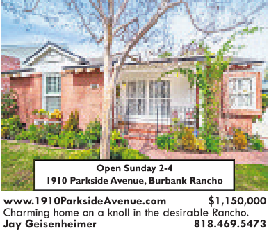 www.1910ParksideAvenue.com $1,150,000 Charming home on aknoll inthe desirable Rancho. Jay Geisenheimer 818.469.5473
