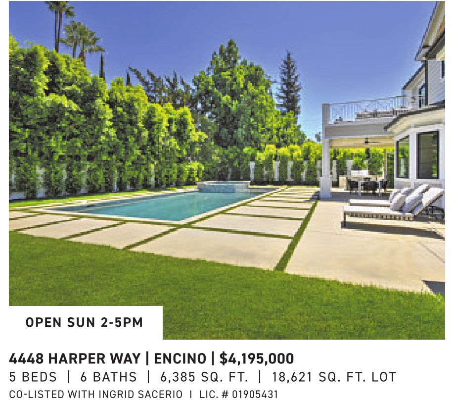 4448 HARPER WAY | ENCINO | $4,195,000 5 BEDS | 6 BATHS | 6,385 SQ. FT. | 18,621 SQ. FT. LOT