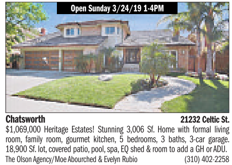 $1,069,000 Heritage Estates! Stunning 3,006 Sf. Home with formal living room, family room, gourmet kitchen, 5 bedrooms, 3 baths, 3-car garage. 18,900Sf. lot,covered patio, pool, spa, EQ shed &roomtoadd aGHorADU. The OlsonAgency/Moe Abourched &EvelynRubio (310)402-2258