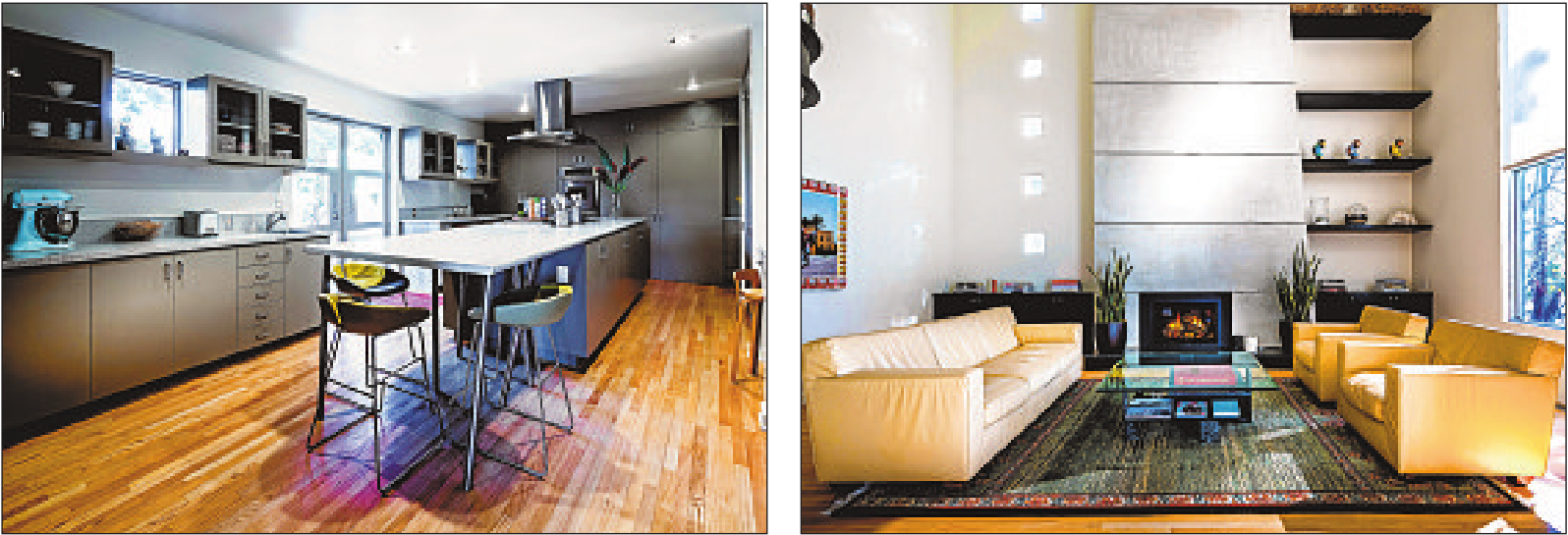 Features: Hardwood and polished concrete floors; vaulted ceilings; clerestories; family room with fireplace; center-island kitchen; office/den; terrace balcony