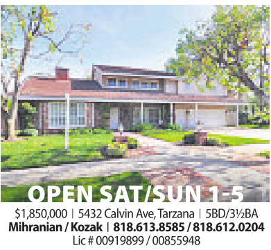 $1,850,000 | 5432 Calvin Ave,Tarzana | 5BD/3½BA Mihranian /Kozak | 818.613.8585 /818.612.0204 Lic #00919899/00855948