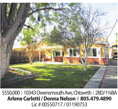 $550,000 | 10343OwensmouthAve,Chtswrth | 2BD/1¾BA Arlene Carletti /DonnaNelson | 805.479.4890 Lic#00550717/01190753