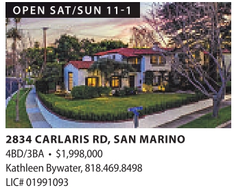 2834 CARLARIS RD, SAN MARINO 4BD/3BA • $1,998,000 Kathleen Bywater, 818.469.8498 LIC# 01991093