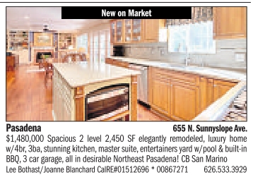 $1,480,000 Spacious 2 level 2,450 SF elegantly remodeled, luxury home w/4br,3ba,stunning kitchen, master suite, entertainers yard w/pool &built-in BBQ, 3car garage, all in desirable Northeast Pasadena! CB San Marino Lee Bothast/Joanne Blanchard CalRE#01512696 *00867271 626.533.3929