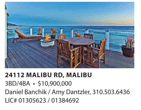 24112 MALIBU RD, MALIBU 3BD/4BA • $10,900,000 Daniel Banchik / Amy Dantzler, 310.503.6436 LIC# 01305623 / 01384692