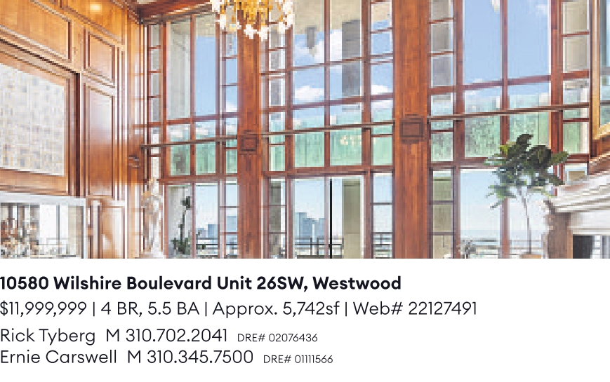 10580 Wilshire Boulevard Unit 26SW, Westwood $11,999,999 | 4 BR, 5.5 BA | Approx. 5,742sf | Web# 22127491