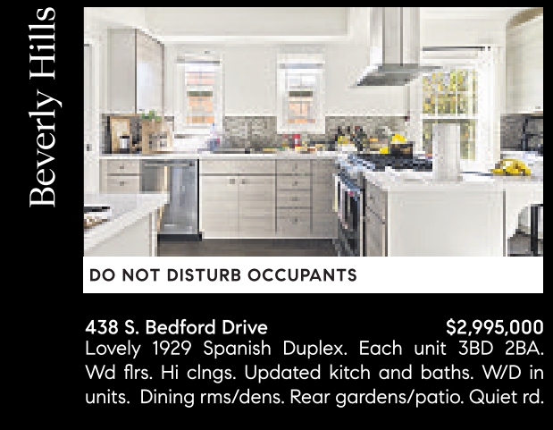 438 S. Bedford Drive $2,995,000 Lovely 1929 Spanish Duplex. Each unit 3BD 2BA.
