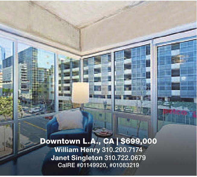 Downtown L.A., CA | $699,000 William Henry 310.200.7174 Janet Singleton 310.722.0679 CalRE #01149920, #01083219