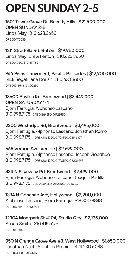 13600 Bayliss Rd, Brentwood | $8,449,000 OPEN SATURDAY 1-4 Bjorn Farrugia, Alphonso Lascano 310.998.7175 DRE 01864250, 01723550