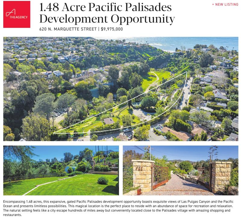 Encompassing 1.48 acres, this expansive, gated Pacific Palisades development opportunity boasts exquisite views of Las Pulgas Canyon and the Pacific Ocean and presents limitless possibilities. This magical location is the perfect place to reside with an abundance of space for recreation and relaxation. The natural setting feels like a city escape hundreds of miles away but conveniently located close to the Palisades village with amazing shopping and restaurants.