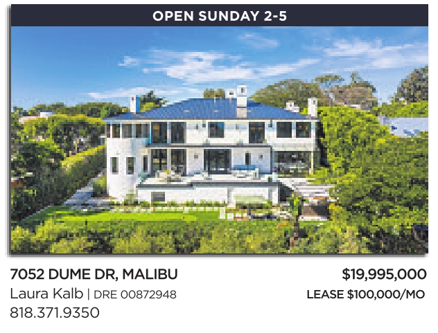 OPEN SUNDAY 2-5 7052 DUME DR, MALIBU $19,995,000 Laura Kalb | DRE 00872948 LEASE $100,000/MO 818.371.9350 See also